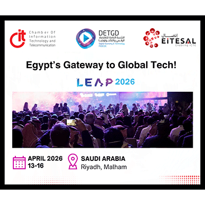 في إطار استعدادات الجناح المصري بمعرض LEAP 2026 والمقرر إقامته بمدينة ملهم – الرياض خلال الفترة من 13 إلى 16 أبريل 2026، يشرفنا دعوة شركتكم الموقرة للتسجيل لحجز مساحة عرض ضمن الجناح المصري والمشاركة في هذا الحدث التقني العالمي.